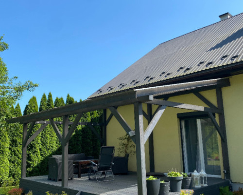 Budynek ogrzewany piecem na drzewo. W budynku zamontowane zostały panele