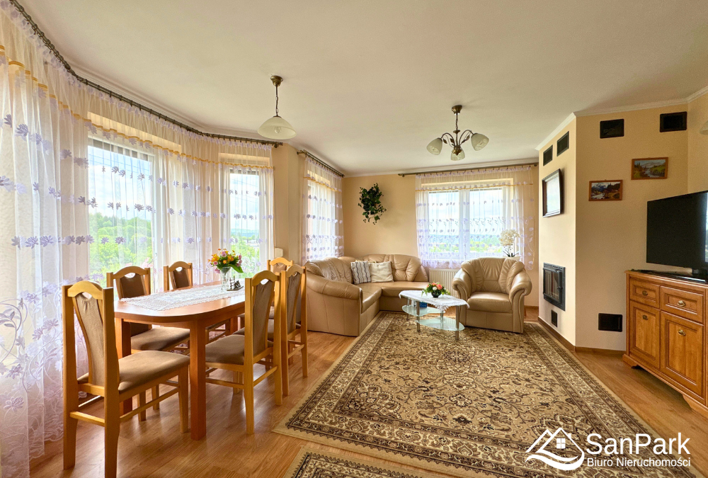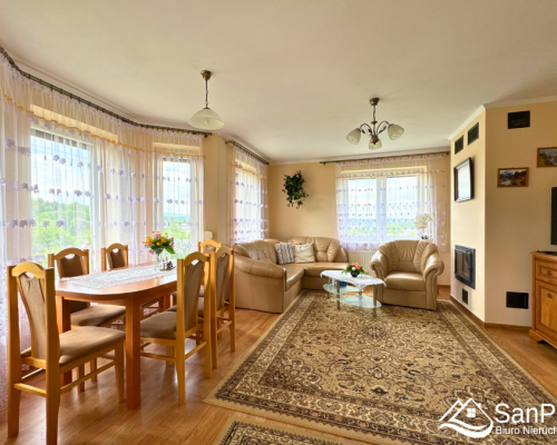 - jasny, duży salon połączony z jadalnią – idealne miejsce na rodzinne spotkania,