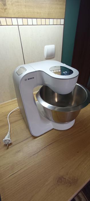 Używany robot planetarny Bosch mum5 1000 W z wyposażeniem jak na zdjęciu(maszynka do mięsa,blender kielichowy,szatkownica)hak do wyrabiania ciasta,końcówka do ubijania piany,końcówka do mieszania lekkiego ciasta,dwie misy w tym jedna metalowa,dodatkowo końcówka do ucierania masy.Stan bardzo dobry do sprawdzenia na miejscu.