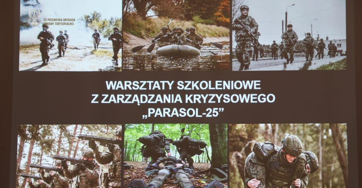 30 września br., odbyły się zorganizowane przez 20. Przemyską Brygadę Obrony Terytorialnej, warsztaty szkoleniowe w zakresie zarządzania kryzysowego pk. „PARASOL-25”. W spotkaniu wzięli udział przedstawiciele służb mundurowych, jednostek samorządowych i naukowych z terenu działania przemyskiej brygady.