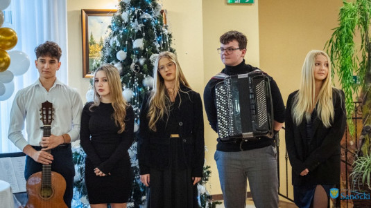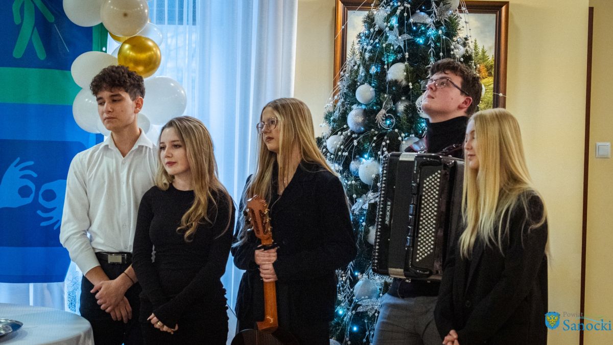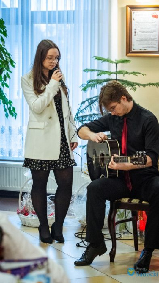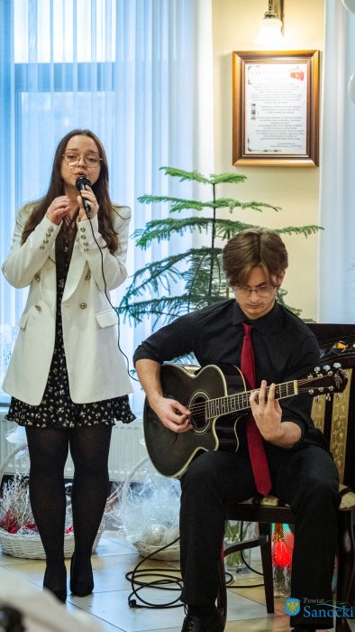 Artystyczną część spotkania przygotowała młodzież z II Liceum Ogólnokształcącego w Sanoku, wcielając się w rolę świętego Mikołaja i jego pomocników oraz prezentując program pełen świątecznych akcentów.